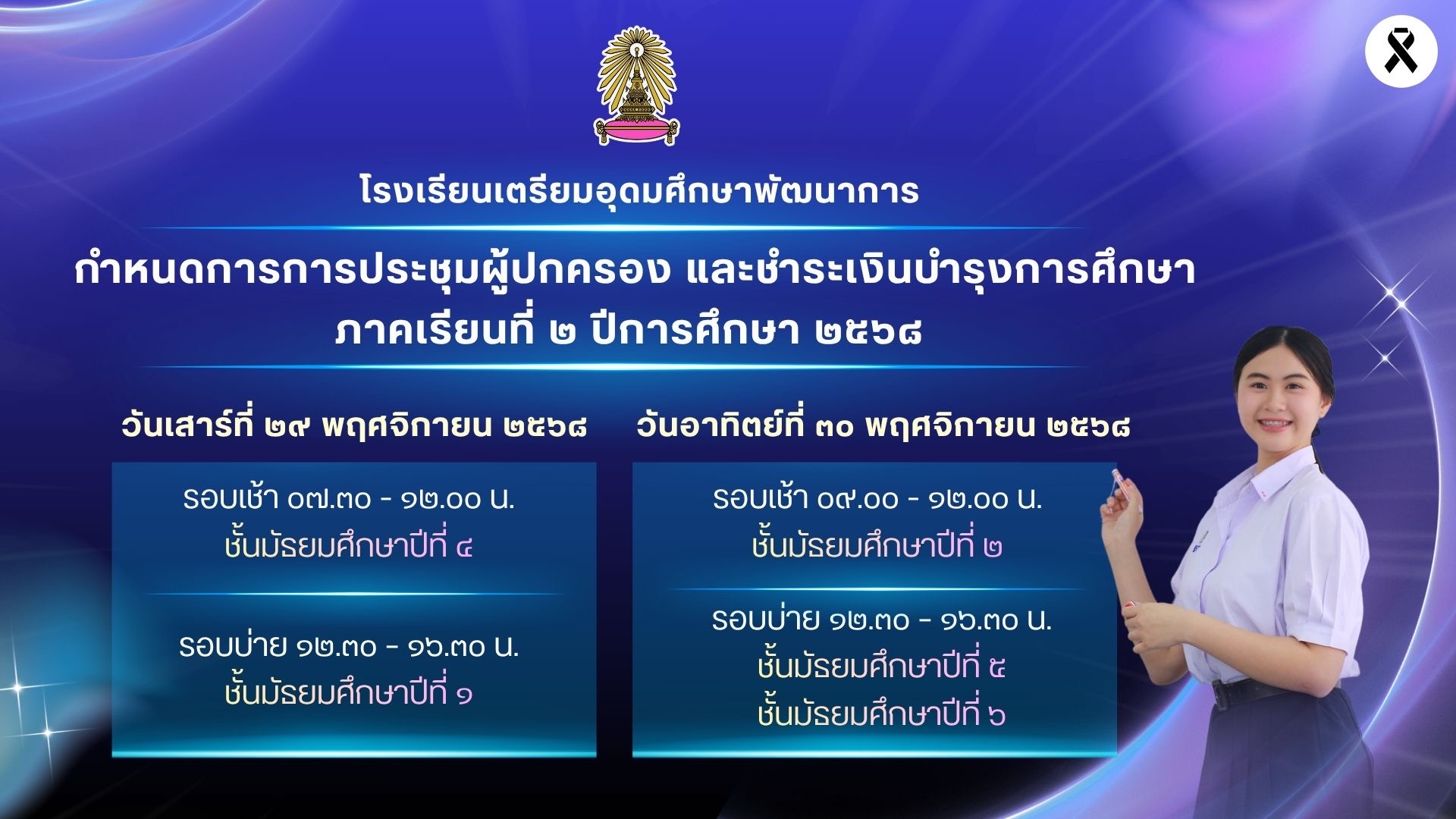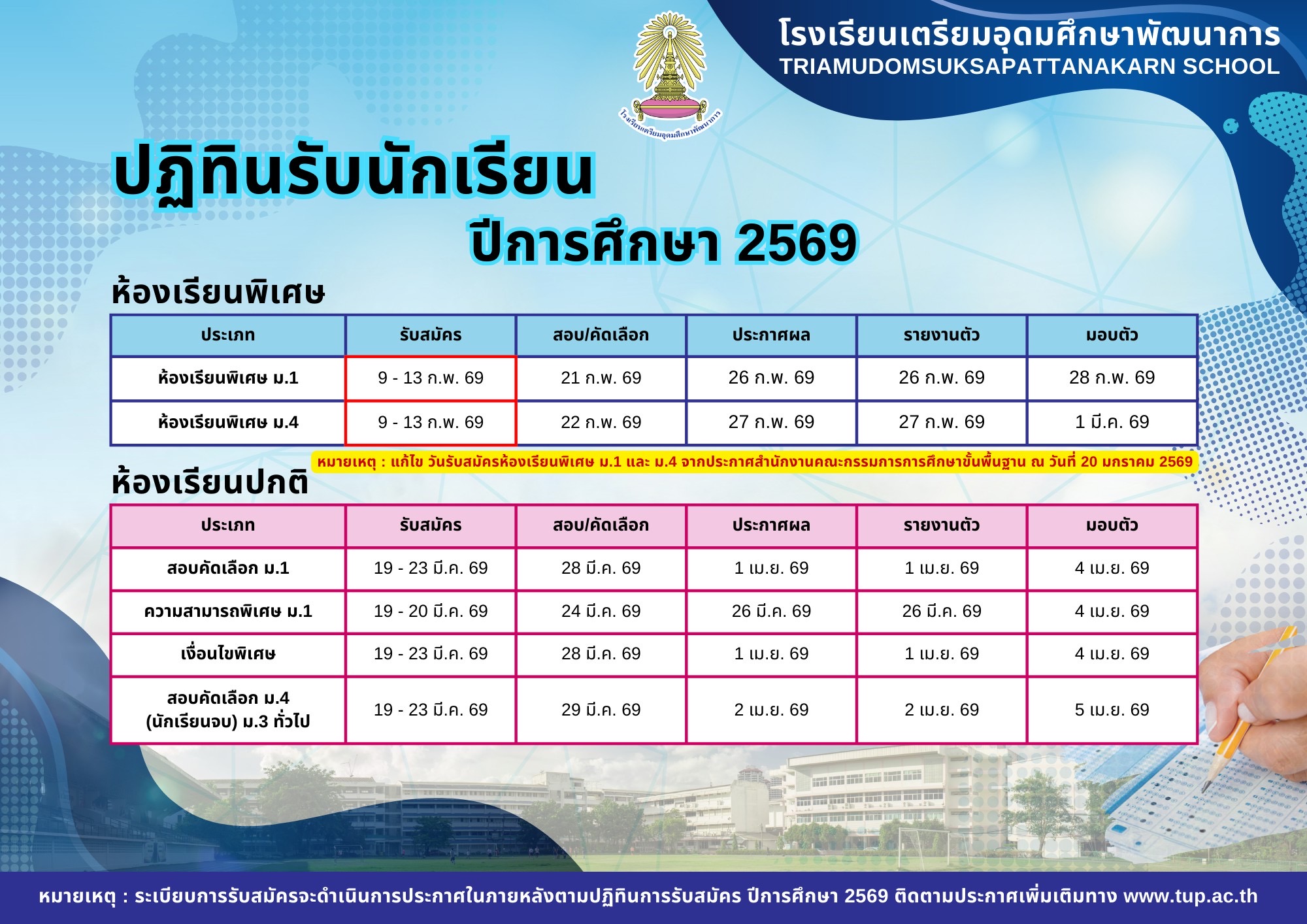 ปฏิทินรับนักเรียน ปีการศึกษา 2569