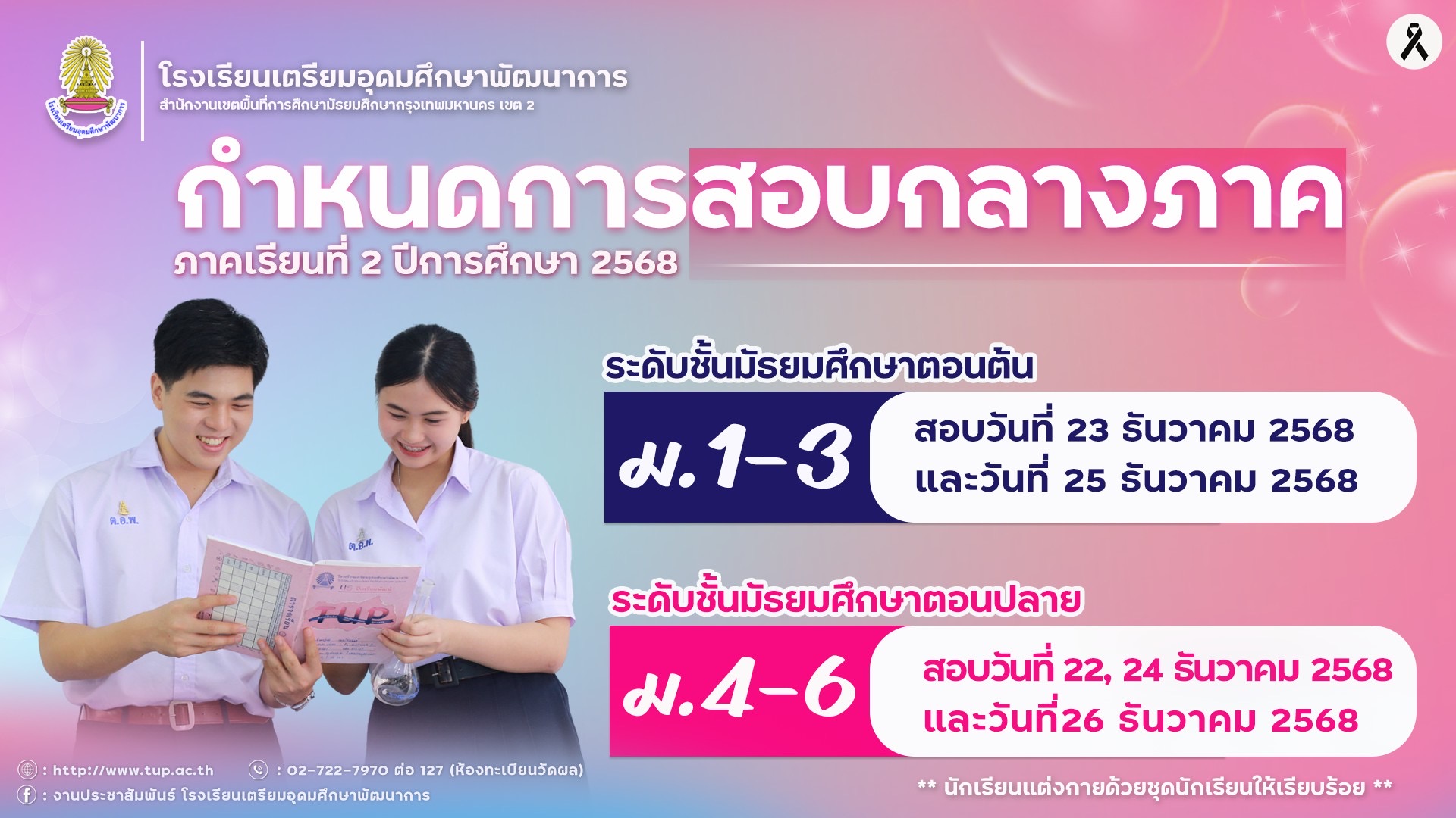 อ่านเพิ่ม...ตารางสอบกลางภาคเรียนที่ 1 ปีการศึกษา 2568
