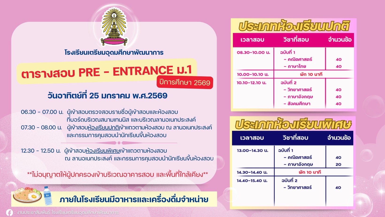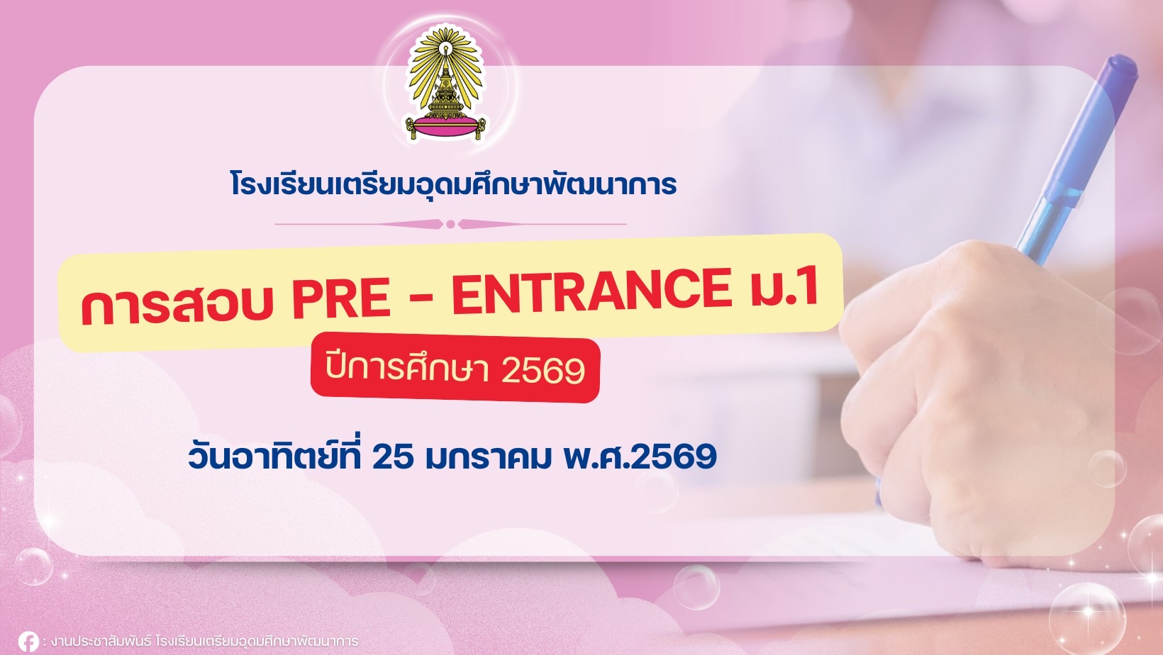 ประกาศรายชื่อผู้มีสิทธิ์สอบจัดชั้นเรียนชั้นมัธยมศึกษาปีที่ 1 ปีการศึกษา 2568