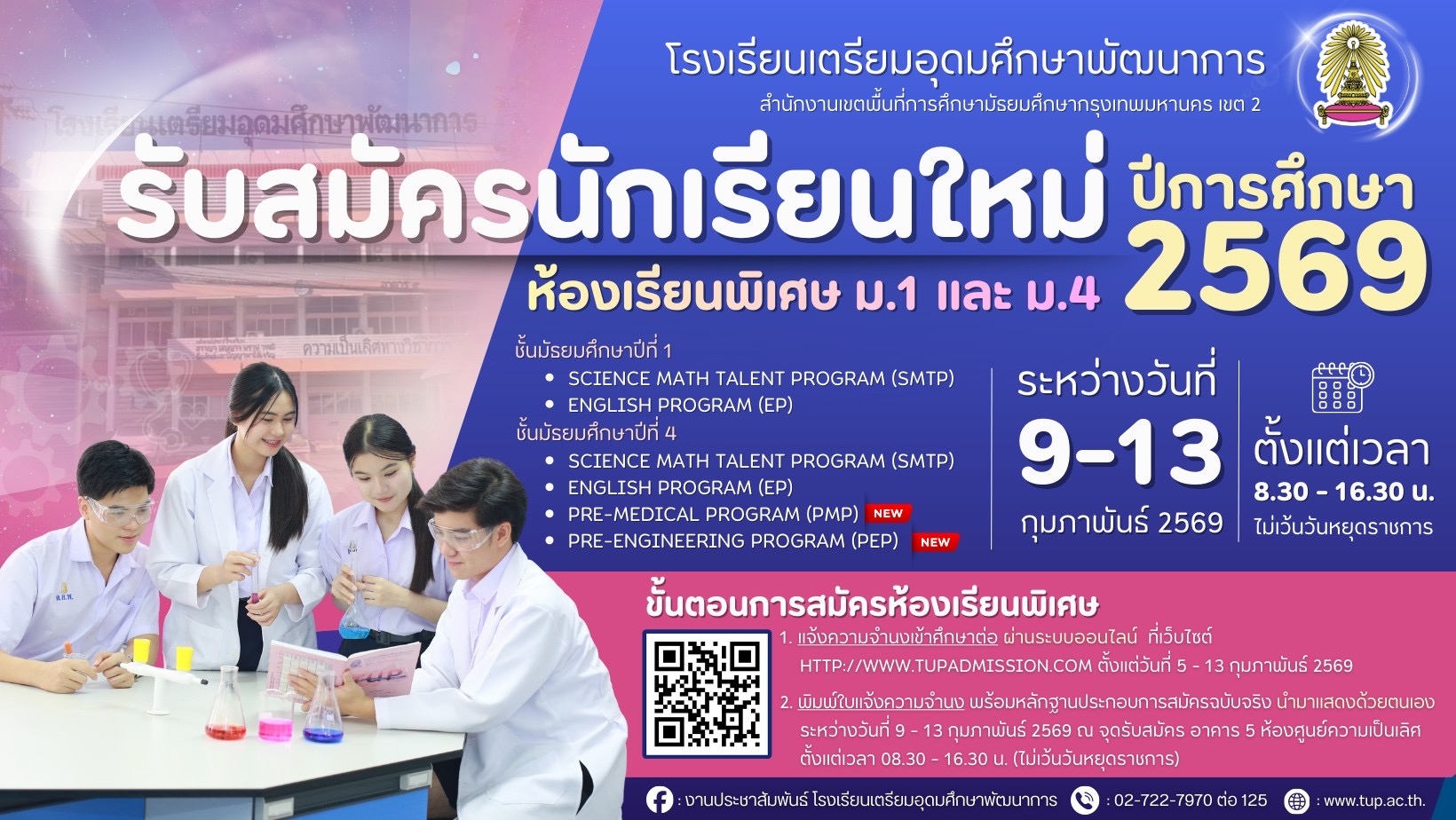 ปฏิทินรับนักเรียน และประกาศรับสมัครห้องเรียนพิเศษ ปีการศึกษา 2569