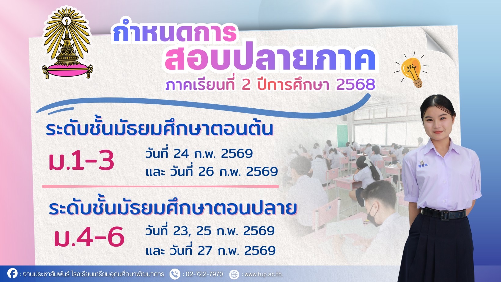 อ่านเพิ่ม...ตารางสอบกลางภาคเรียนที่ 1 ปีการศึกษา 2568