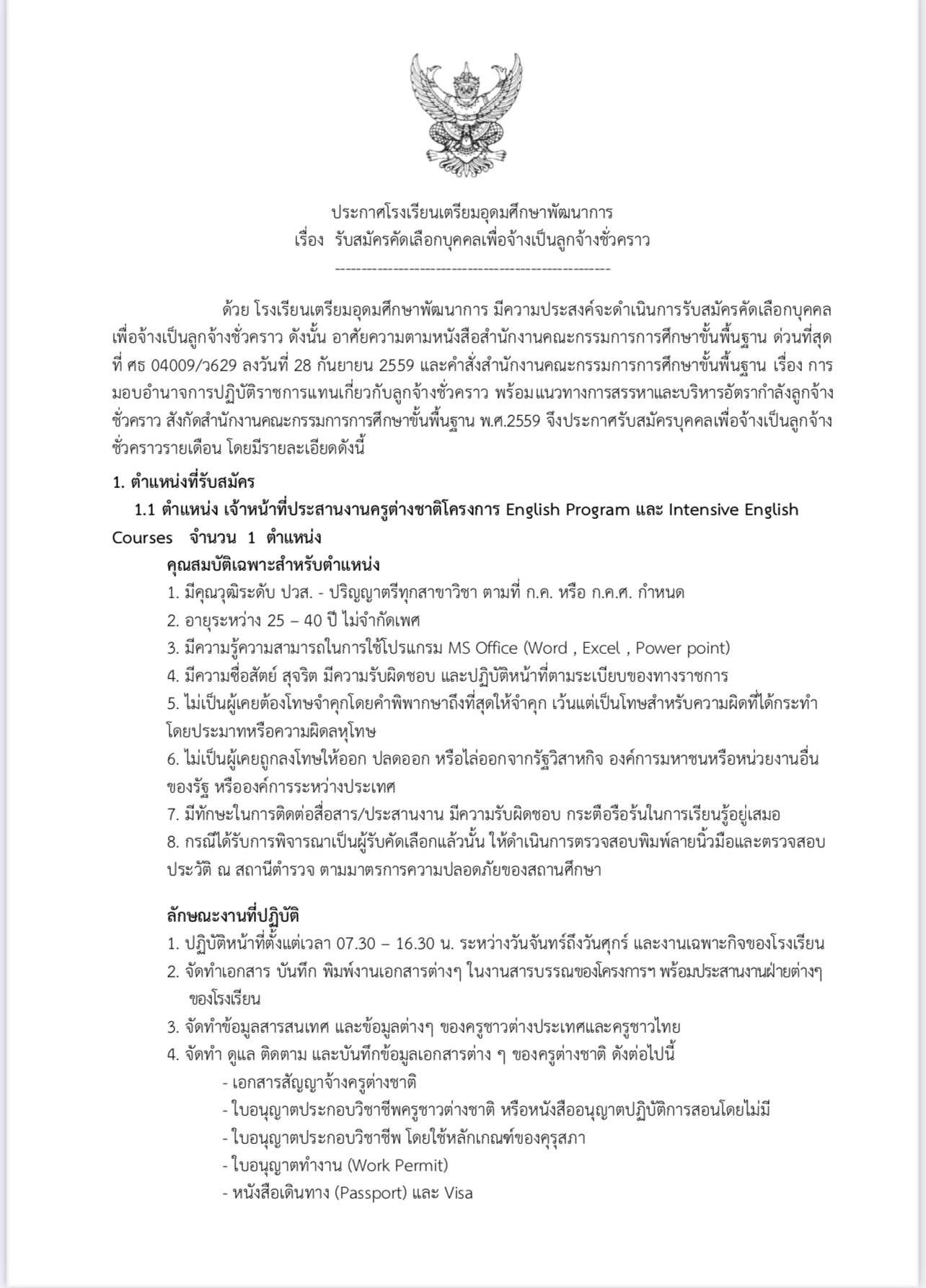 รับสมัครลูกจ้างประสานงานEP,IEC