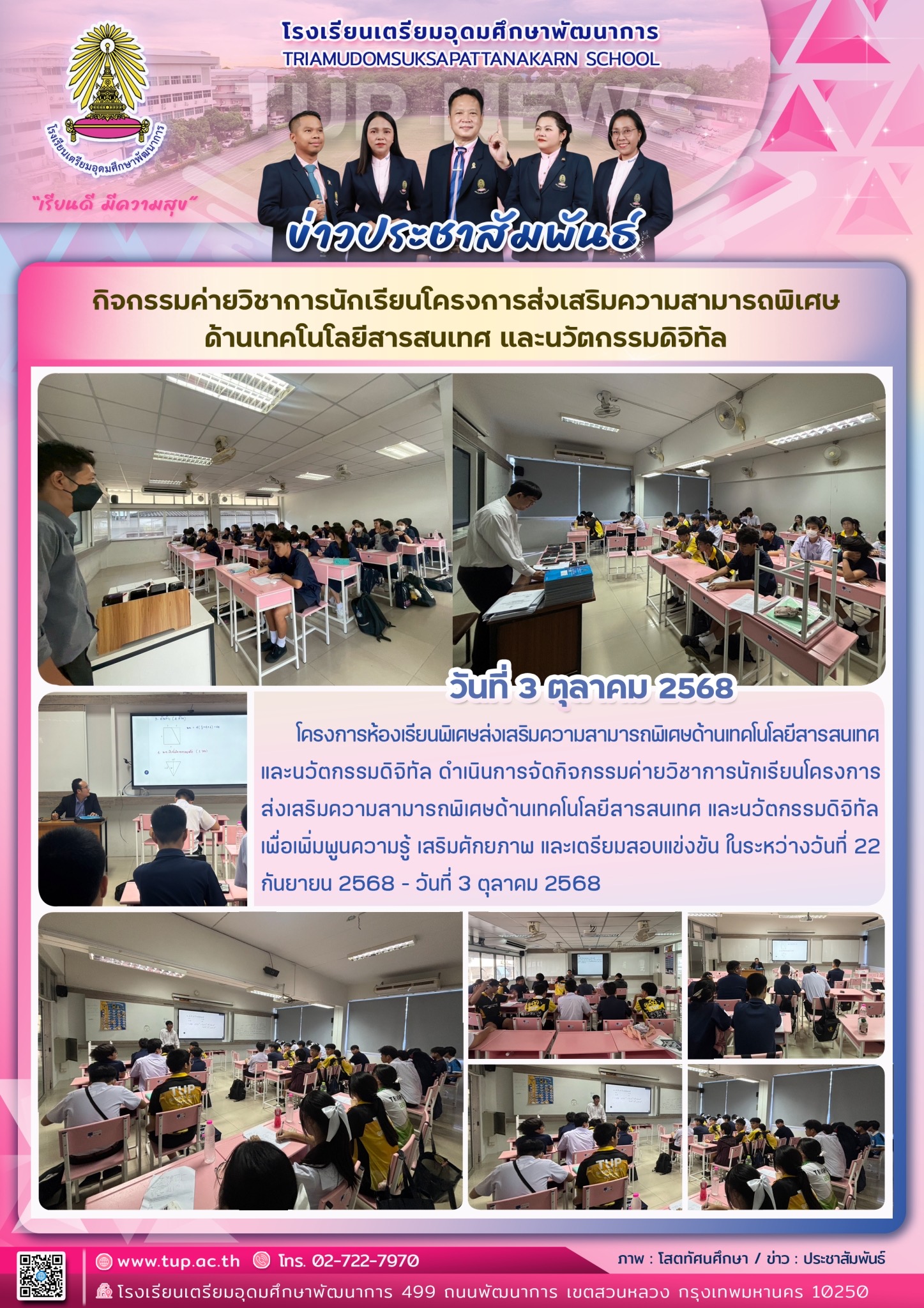 กิจกรรมค่ายวิชาการนักเรียนโครงการส่งเสริมความสามารถพิเศษด้านเทคโนโลยีสารสนเทศ และนวัตกรรมดิจิทัล