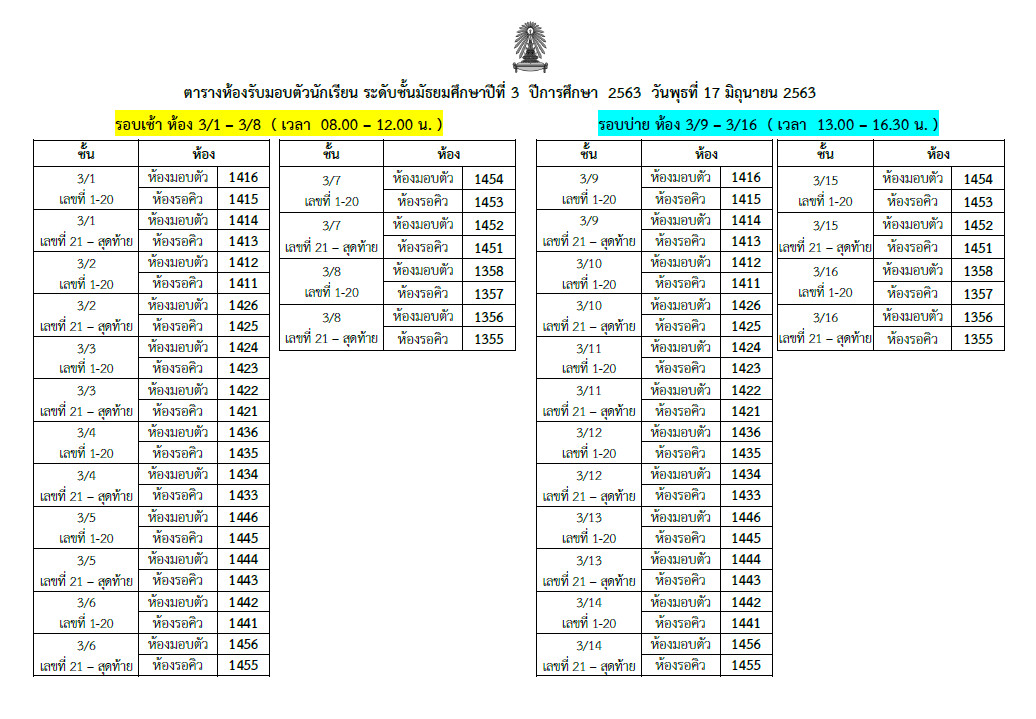 ให้ยึดห้องเรียนตามแผนผังอาคารเรียน 18 พ.ย. 64
