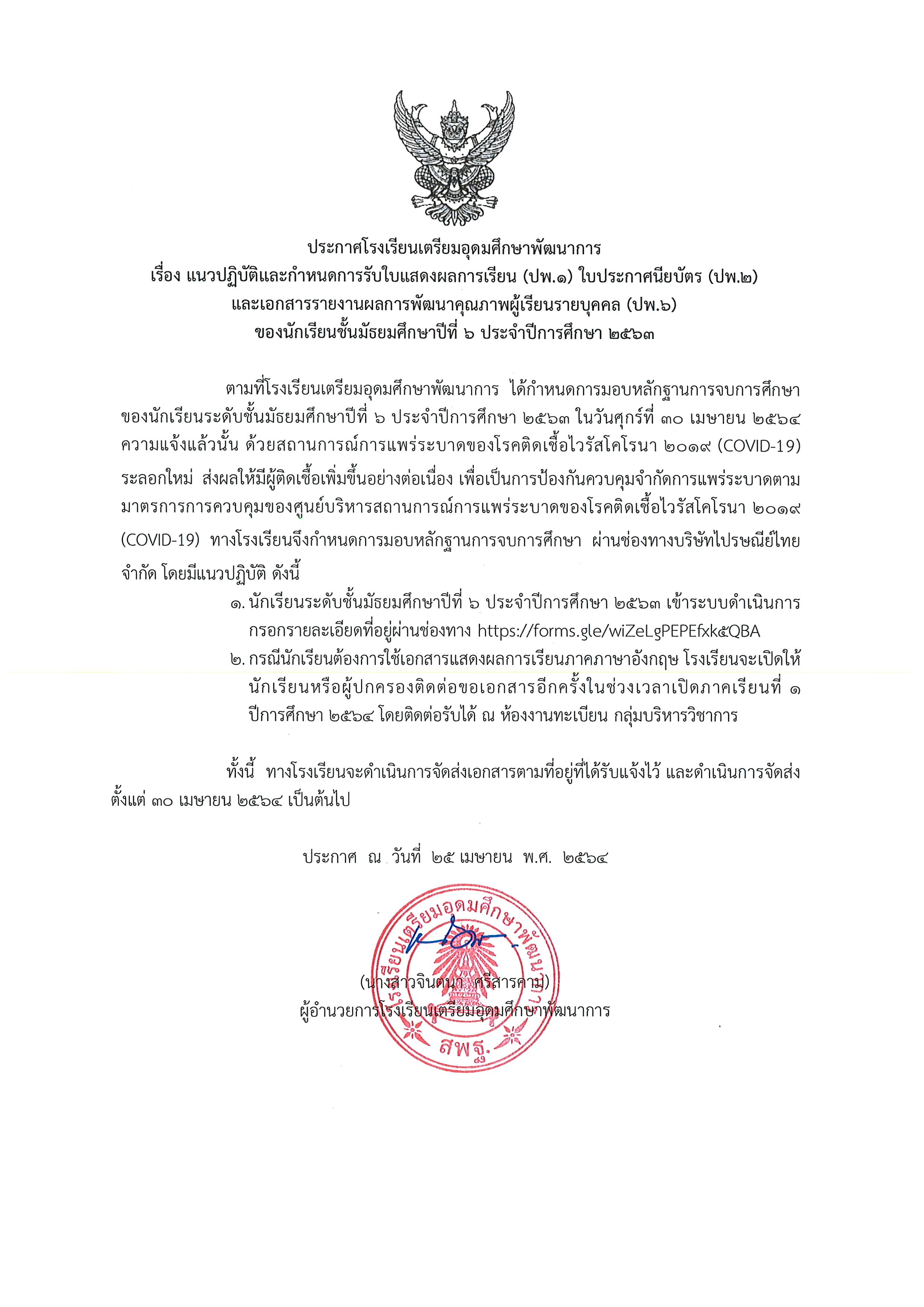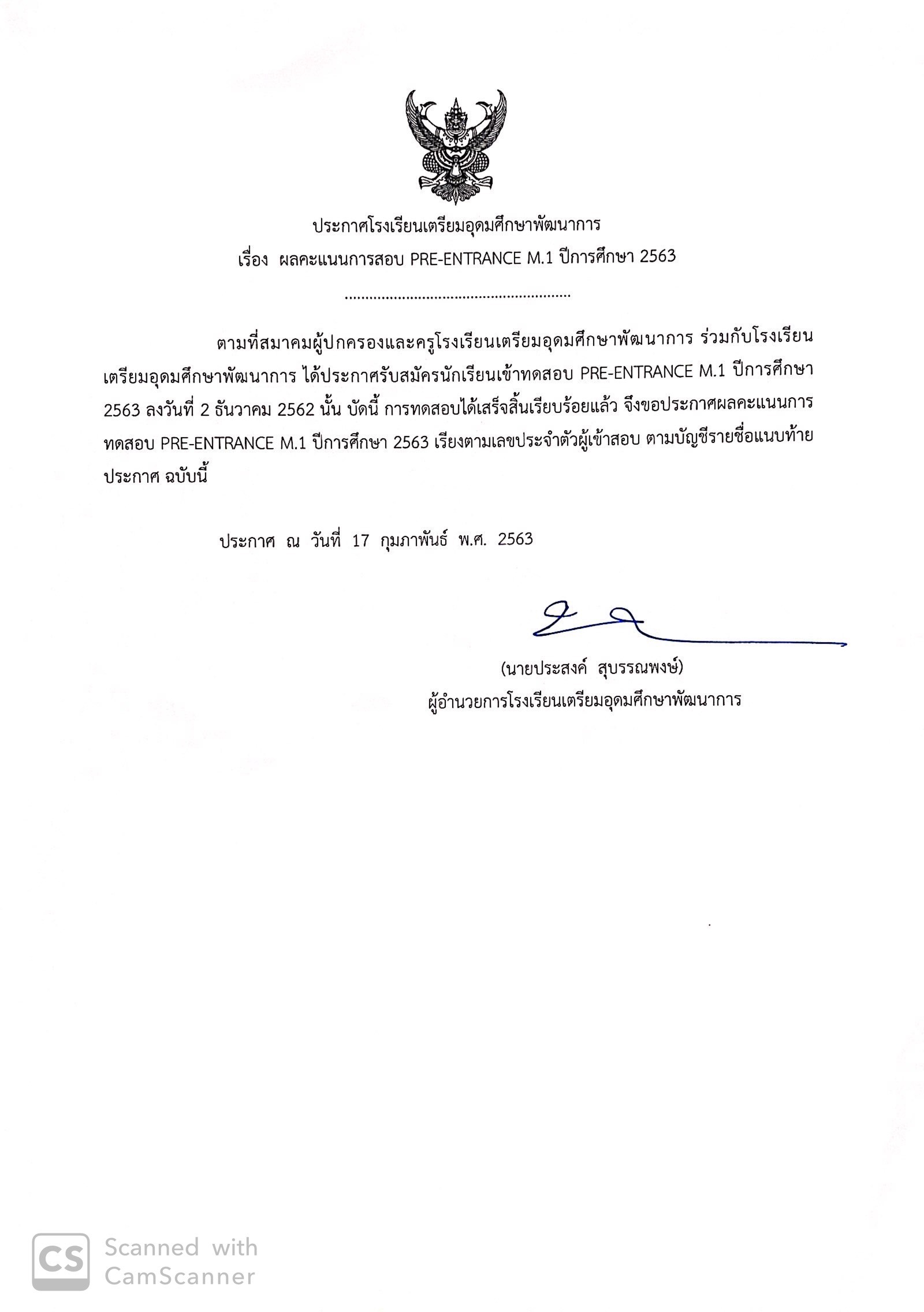ประกาศโรงเรียนเตรียมอุดมศึกษาพัฒนาการ